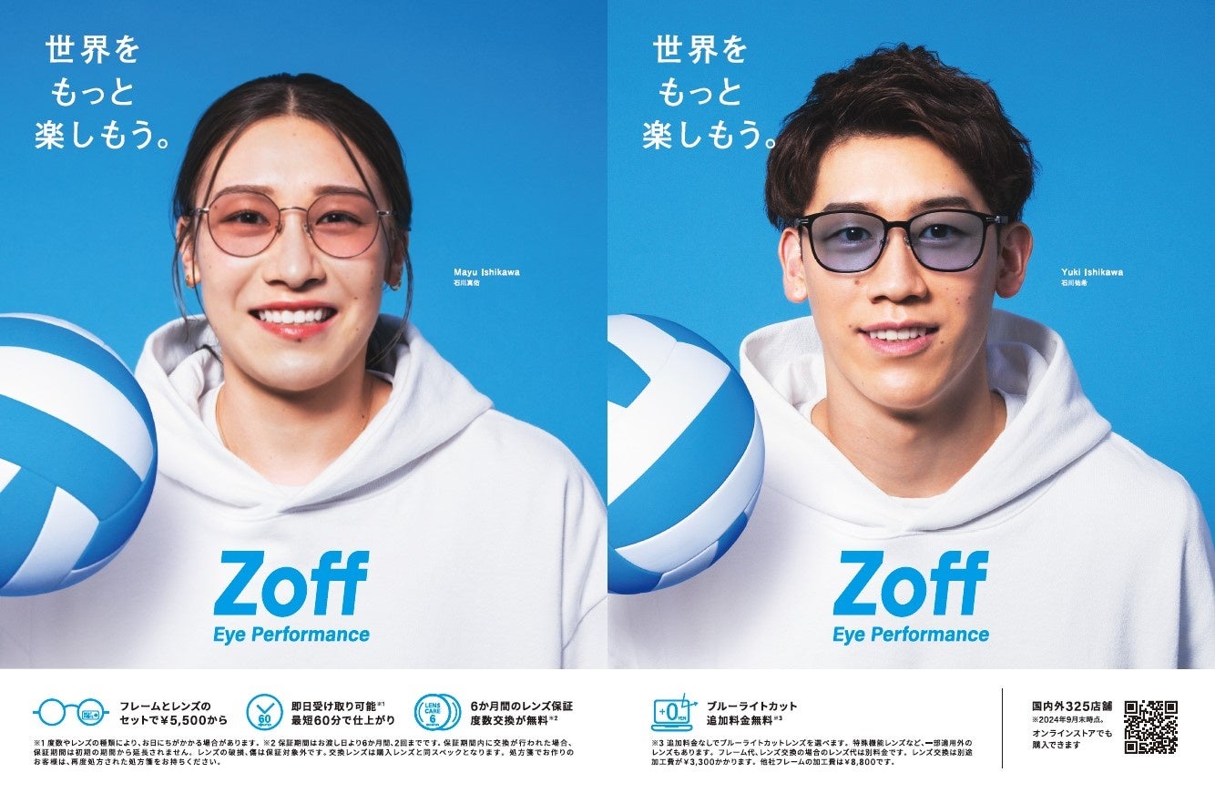 メガネブランド「Zoff(ゾフ)」は、プロバレーボールプレーヤーの石川祐希選手、石川真佑選手を起用した新CM「Zoff meets 石川兄妹」篇を、2024年10月4日(金)より全国で順次放送を開始します。