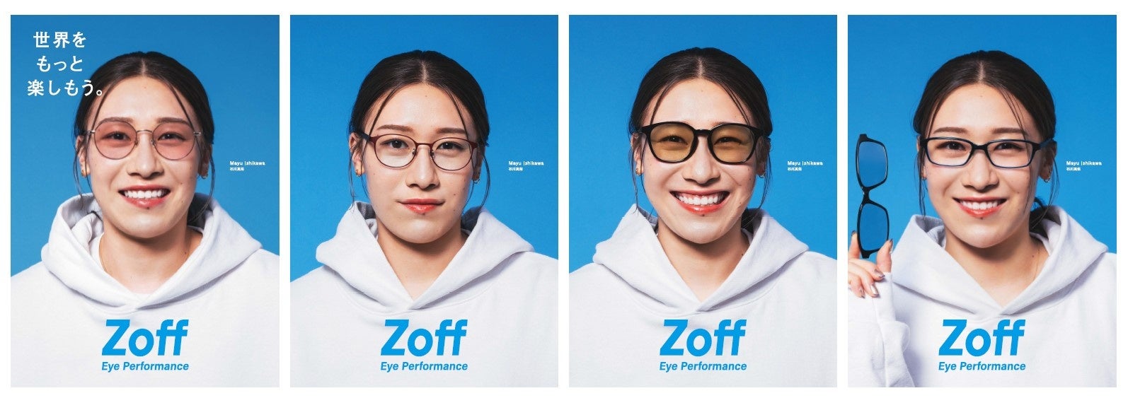 真佑選手:撮影時は不安でしたが、素敵なCMに仕上げていただけて嬉しく思います。このCMをきっかけに「Zoff」のメガネを買っていただけたら嬉しいですし、わたしもメガネをかける機会を増やしていきたいです。