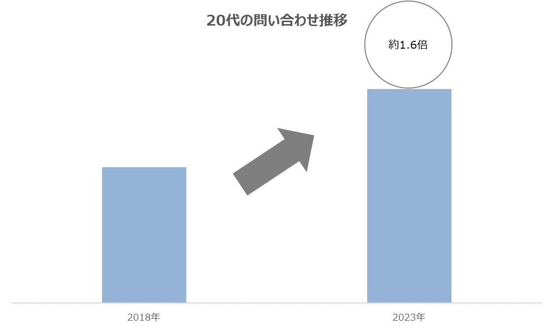 また20代からの問い合わせの状況については2018年比で約1.6倍になっています。