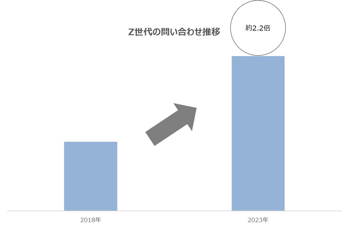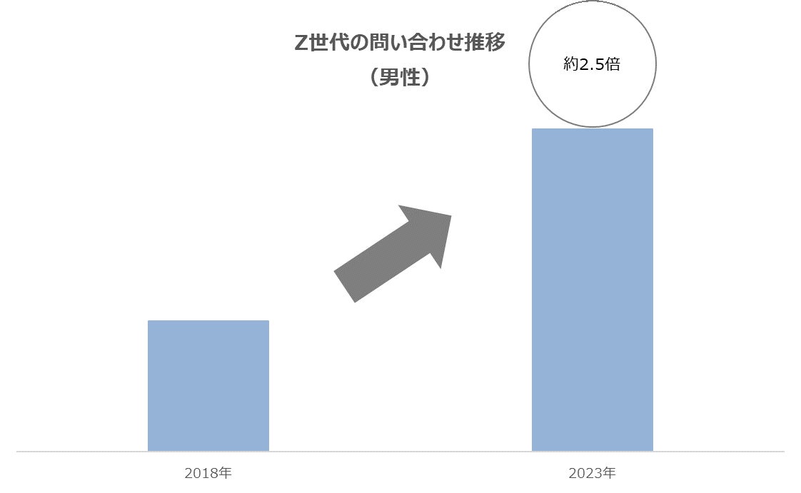 次に、Z世代(20歳~26歳)についても調べてみたところ、2018年比で約2.2倍になっていました。