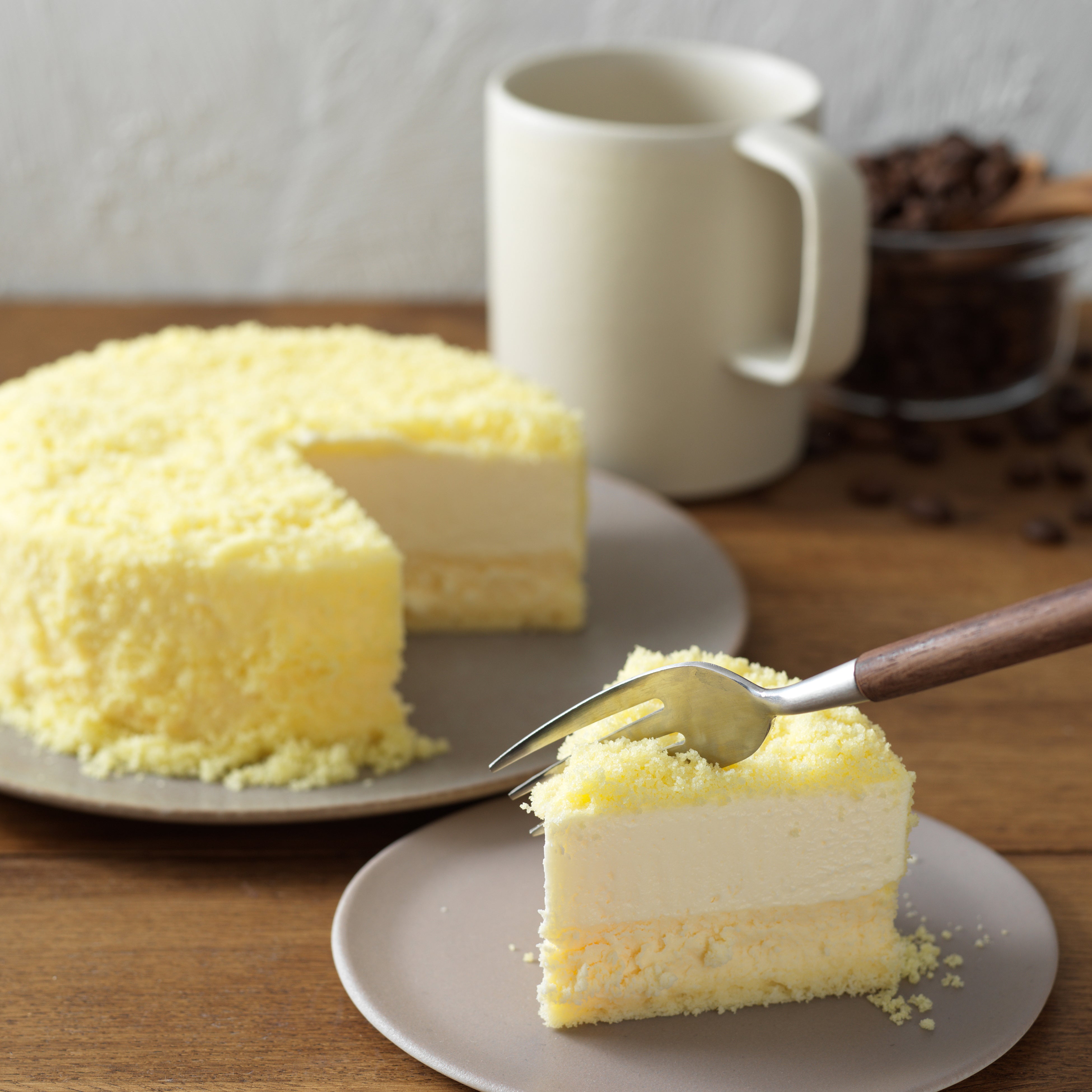フレッシュなミルク本来の風味とほのかな甘みが特長のオーストラリア産クリームチーズを使ったベイクドチーズに、生クリームのような豊かな風味をもつ北イタリア産マスカルポーネのレアチーズを重ねた二層のチーズケーキです。世界から取り寄せたチーズと組み合わせるのは、豊かな乳味と後味が爽やかなルタオのオリジナル生クリームです。二層のチーズケーキと、北海道の雪をイメージさせるそぼろが口の中で一体となってとけていきます。