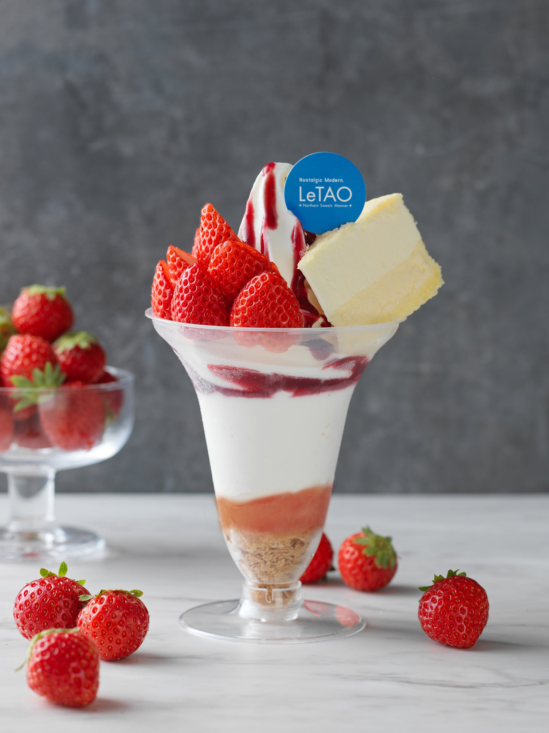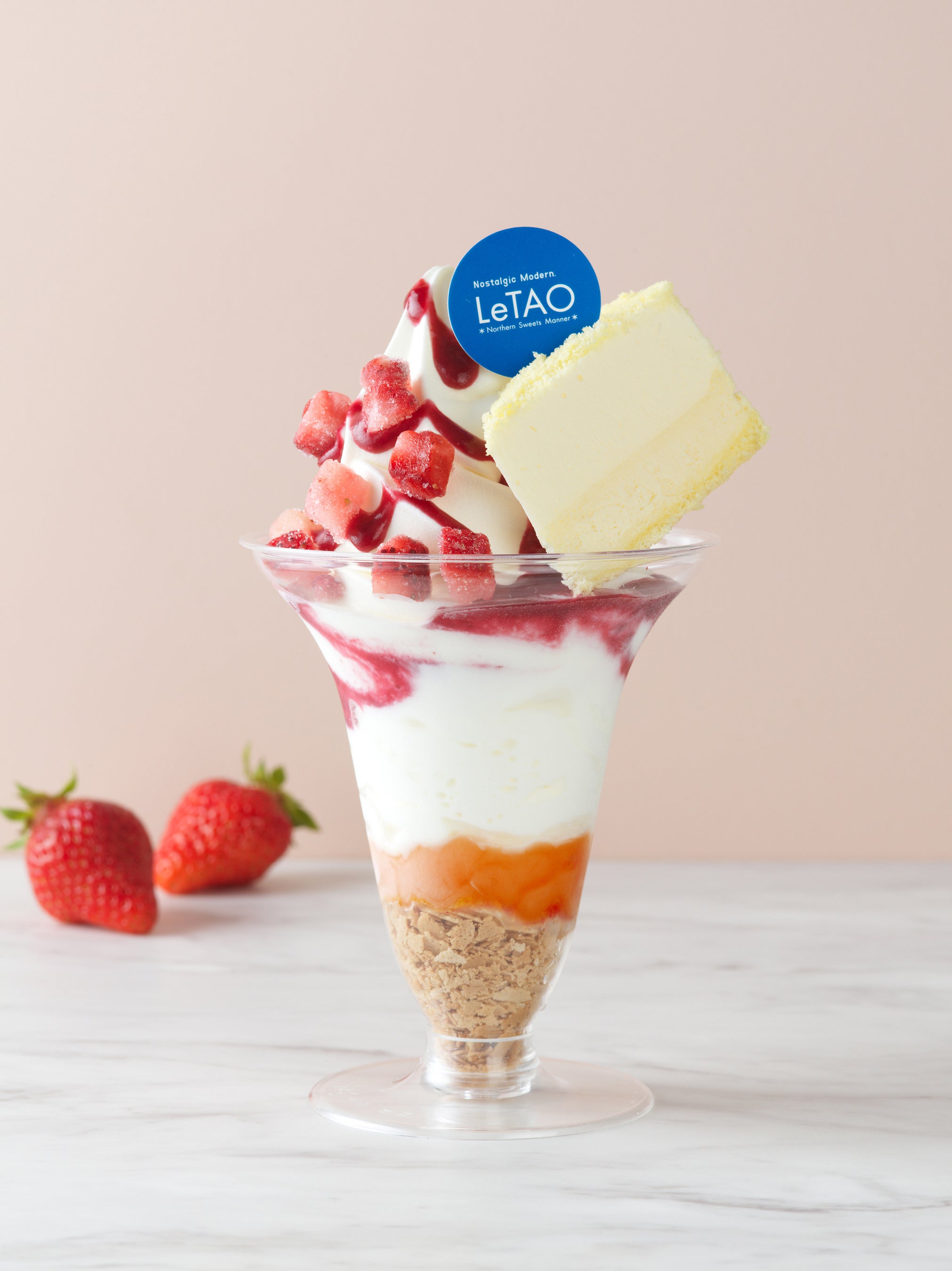 北海道産苺と、ルタオ1番人気のドゥーブルフロマージュを飾った豪華なプレミアムパルフェ