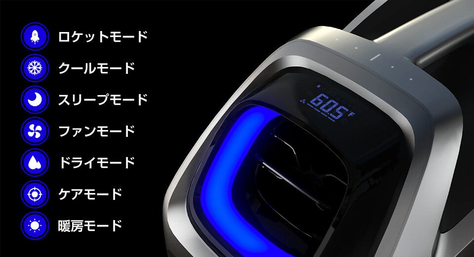 即時冷却が可能な「ロケットモード」や静音で消費電力を抑えた「スリープモード」、最大30℃近くまで暖める「暖房モード」など7つのモードを搭載。アウトドアで一年中快適に過ごすことができます。