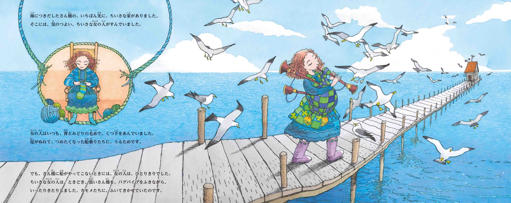 本書は、ニュージーランドの人気作家、ジョイ・カウリーのお話を、佐竹美保が絵本化したもの。二人の登場人物のユーモラスなやりとりが楽しく、さまざまな海の情景が美しい、人気画家・佐竹美保の渾身の絵本です。