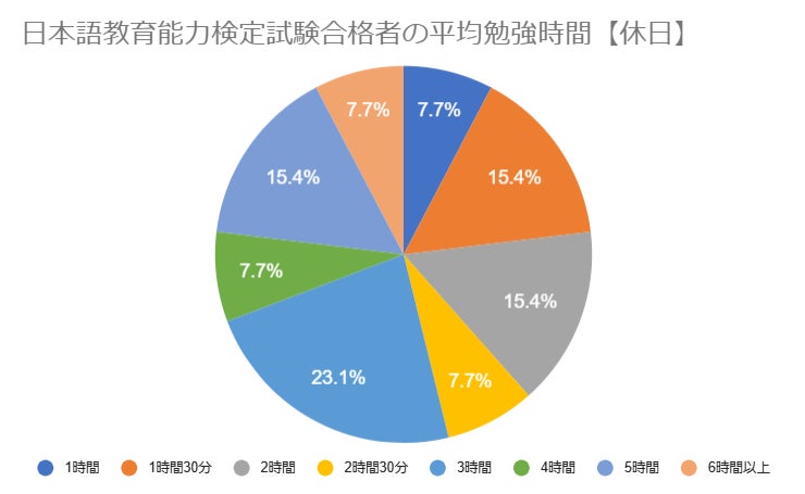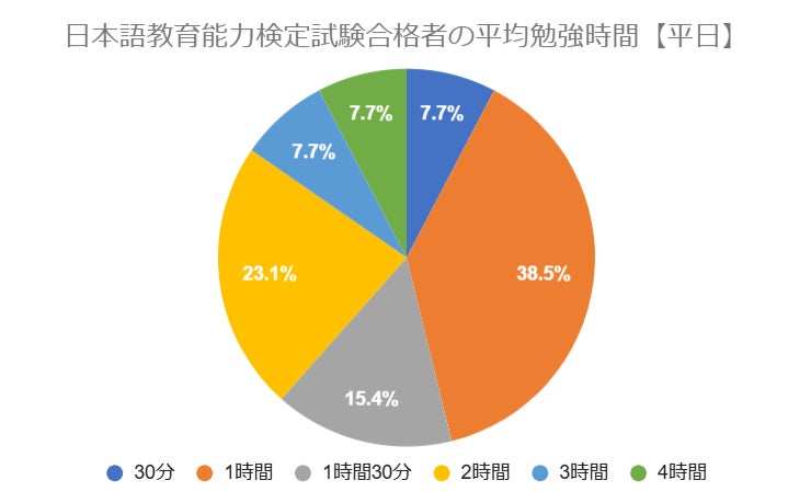 日本語教育能力検定試験の勉強時間に関するアンケート結果「合格者の勉強時間は平日1時間以上が92.4%、休日3時間以上が53.9%」