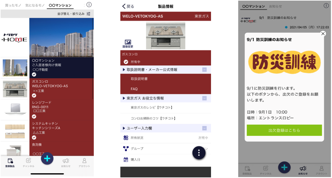 *1:「トリセツ+HOME(トリセツホーム)」とは、東京ガスが「トリセツ」上で提供するサービスです。「トリセツ」とは、株式会社トライグルが提供する、家電製品の取扱説明書等の情報をスマートフォンアプリやパソコンで一元管理できるサービスです。なお、本サービスの提供には最低導入戸数等の一定の条件があります。詳細はサービスホームページをご確認ください。