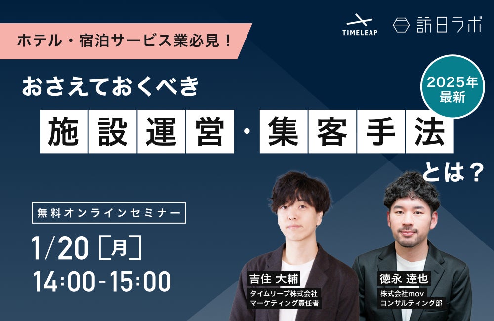 本セミナーでは、最新の宿泊業界トレンドを踏まえ、施設運営の効率化や顧客満足度を高める戦略、そして集客を強化するための実践的な手法について詳しく解説します。