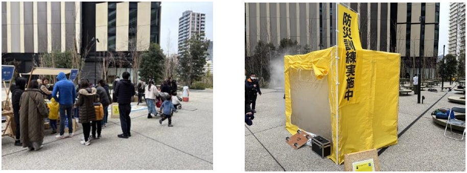 煙体験テント 水消火器訓練 タワーマンションでの非常階段とエレベーターでの防災訓練 等 |