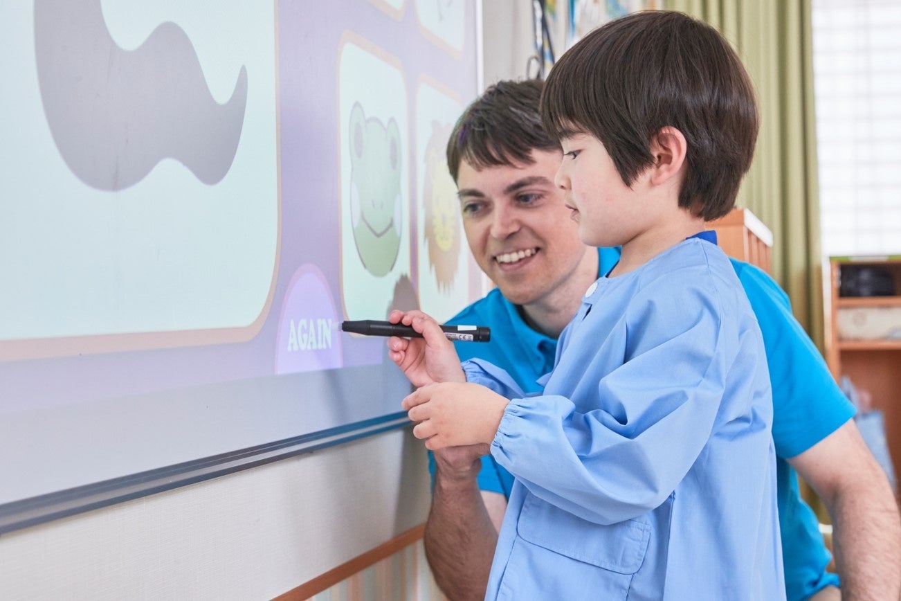 ネイティブ講師と日本人講師が連携するダブル講師制の小学生向け英会話レッスン。オーストラリアの専用スタジオと日本の教室をLIVEでつなぎ、少人数・ノーテキストの環境で、豊富な会話量を確保。ゲーム性のあるアクティブなレッスンや、成功体験を重ねる学習サイクルを通じて、楽しく英語を上達させ、実践的な英語力を育みます。
