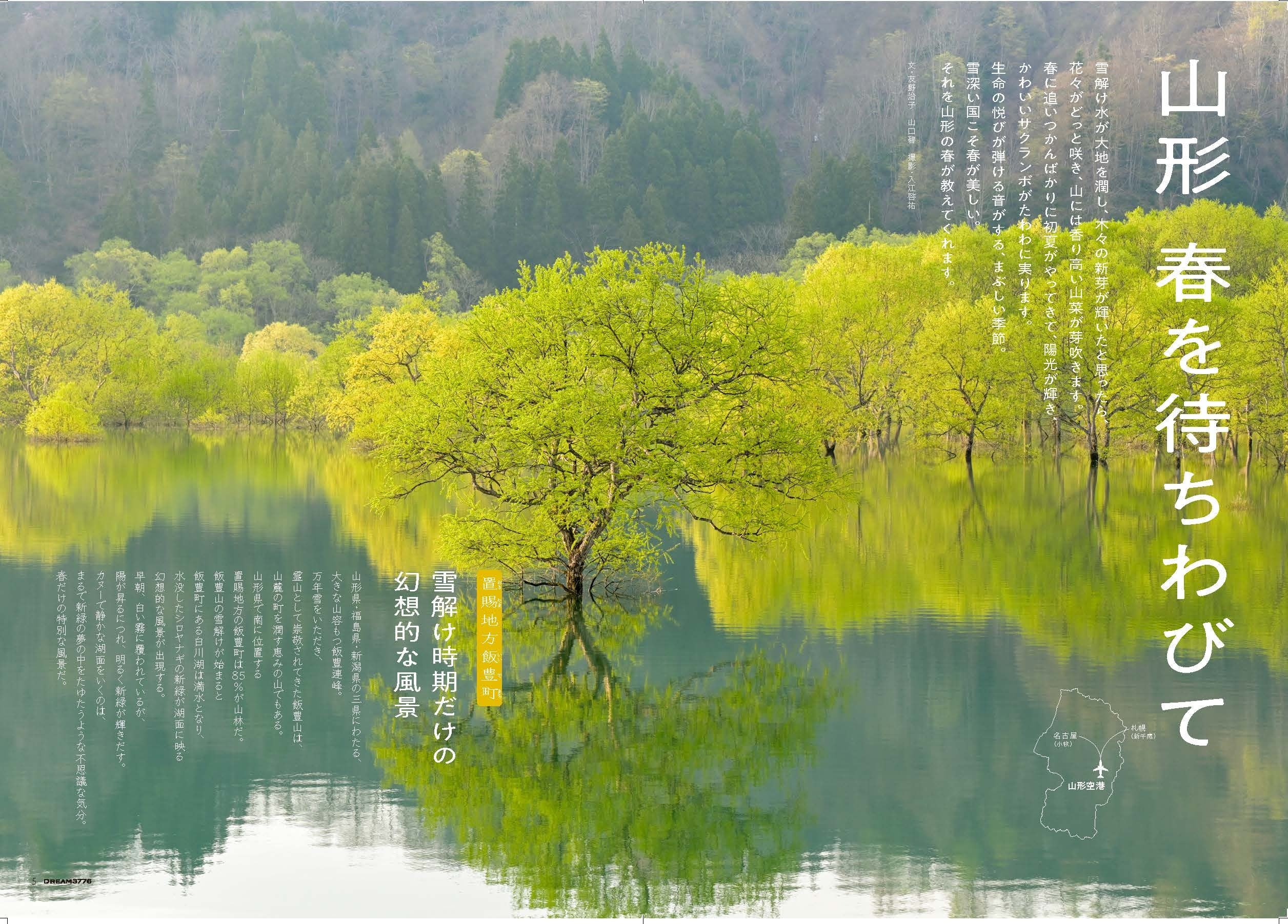 今回の機内誌「DREAM3776 ”2025年冬号”」では「山形 春を待ちわびて」をテーマに、置賜(おきたま)地方で雪解けの時期のみご覧いただける「白河湖水没林」、日本屈指の名湯「蔵王温泉」やさくらんぼで有名な村山地方など、雪国・山形に訪れる春の楽しみ方を紹介します。FDA便にご搭乗の際は、同機内誌をお楽しみください。
