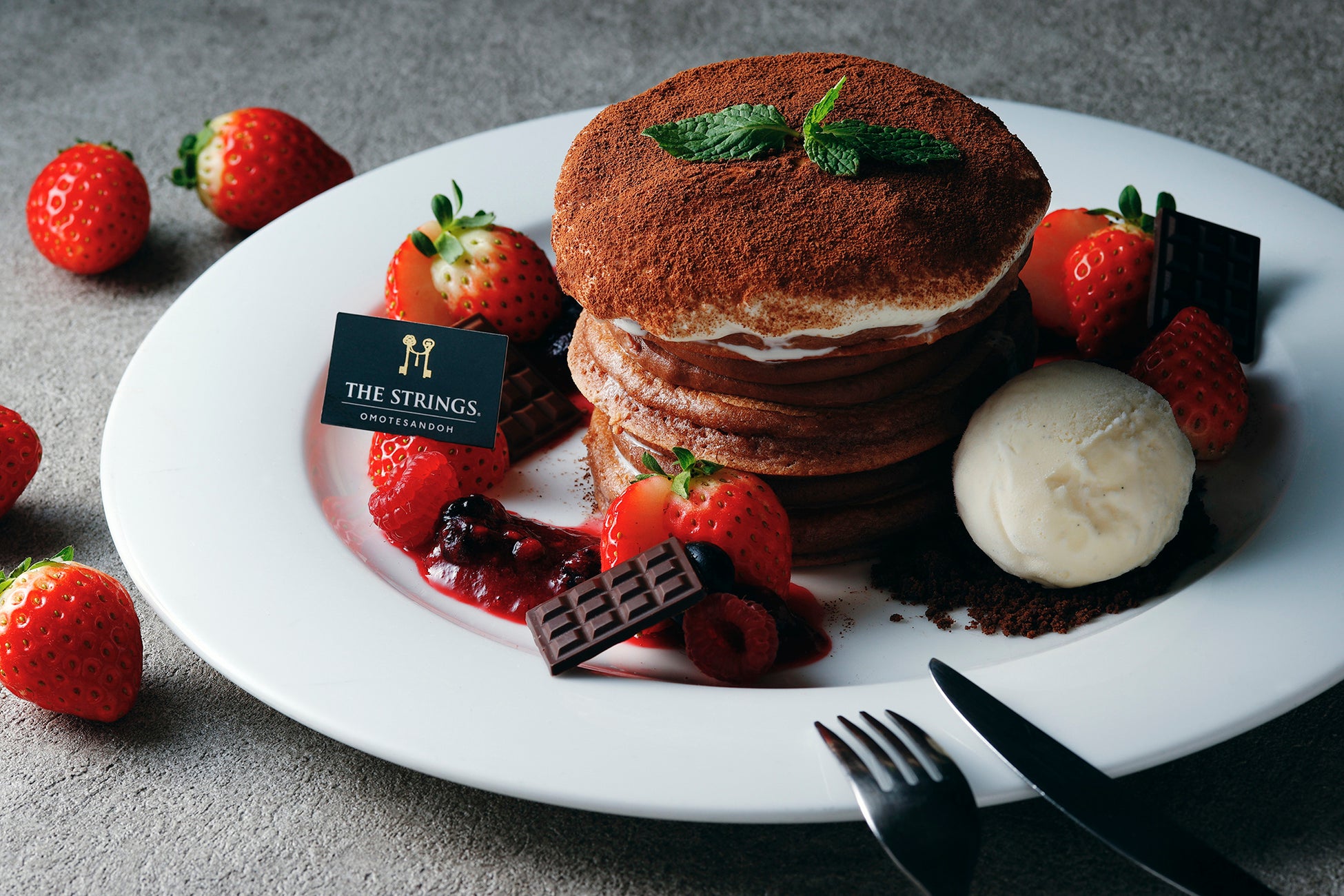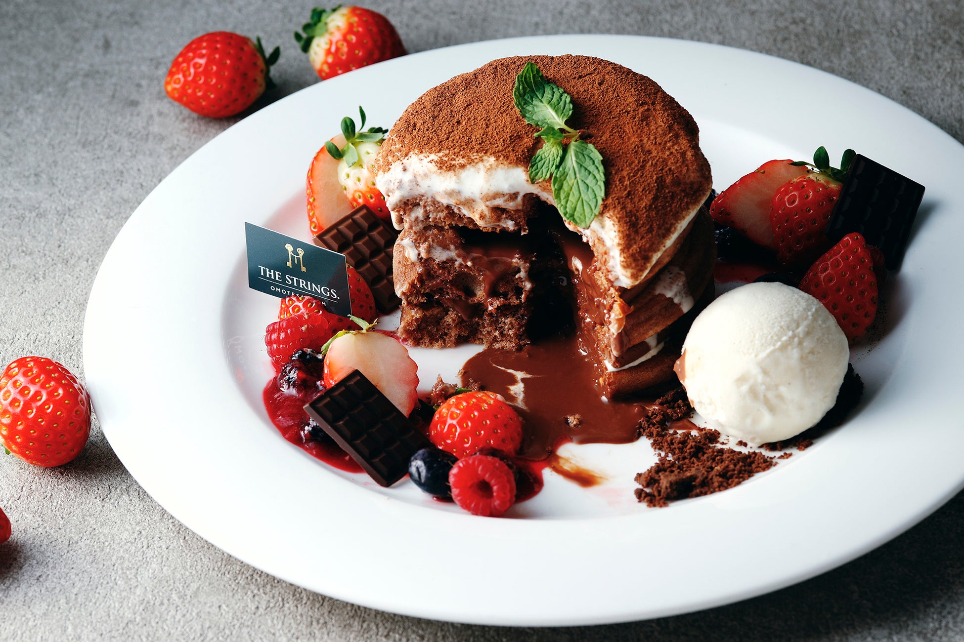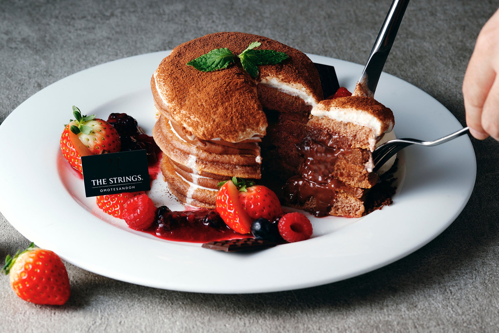 ザ ストリングス 表参道(所在地:東京都港区北青山3-6-8、総支配人:宮田宏之)では、1階「Cafe & Dining ZelkovA(カフェ&ダイニング ゼルコヴァ)」にて、ティラミス×フォンダンショコラ×パンケーキの3つを掛け合わせた贅沢スイーツ『とろっと濃厚!溢れる ストロベリー&ティラミスショコラパンケーキ』を2024年12月26日(木)~2025年4月2日(水)の期間で提供。カットすると中からあたたかなチョコレートがとろけ出る演出で至福のスイーツタイムをお届けいたします。