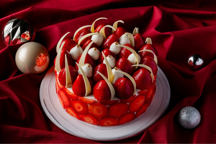 開業後初めてのクリスマスを迎えるTHE OSAKA STATION HOTEL, Autograph Collection(以下「大阪ステーションホテル」)からは、金箔をまとった姿が印象的なショートケーキが登場します。濃厚かつ後味のよい甘さとジューシーさが魅力の「空浮いちご」(※)とブルーベリーやラズベリーをトップにあしらい、側面はホワイトチョコレートにぐるりと金箔を飾りました。