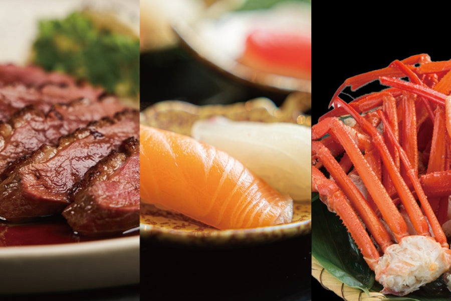 お肉料理をはじめ、お寿司やクリスマススイーツをお楽しみいただけます。ディナータイムにはかにの食べ放題もご用意いたします。