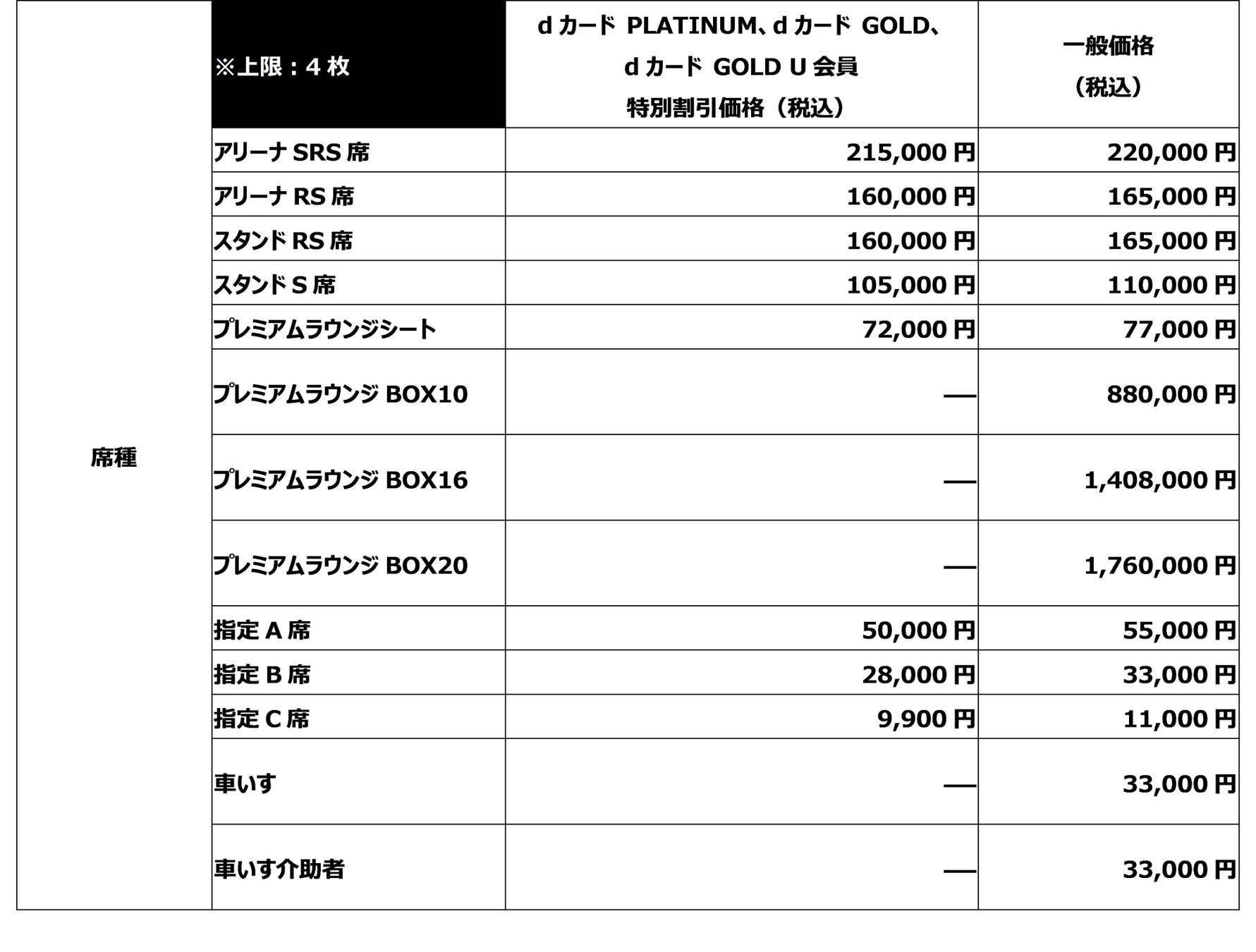 本試合の観戦チケットは、2025年7月10日(木)午後6時00分からdカード PLATINUM、dカード GOLD、dカード GOLD Uご契約者さま限定で特別割引価格の最速で先着販売を開始いたします。