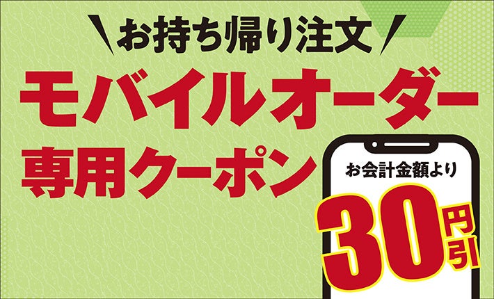 さらに、今ならモバイルオーダー専用30円引きクーポンをプレゼントしております。