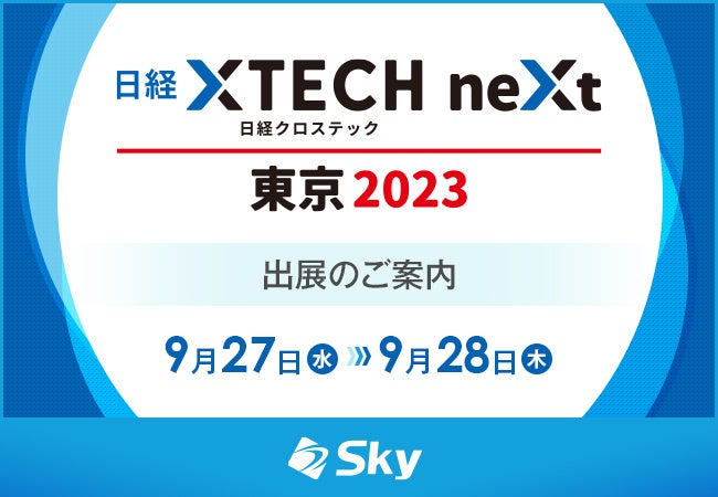 Sky株式会社は、2023年9月27日(水)~ 9月28日(木)に東京国際フォーラムで開催される「日経クロステックNEXT 東京 2023」に出展いたします。