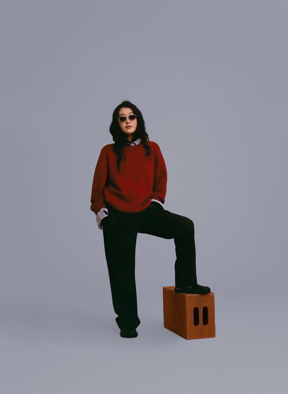 レトロな雰囲気とトレンドを両立させたデザイン。メガネとサングラス両方が楽しめる一本。オーバーサイズのニットをざっくり着崩して、太めのシルエットでありながら上品な印象を。