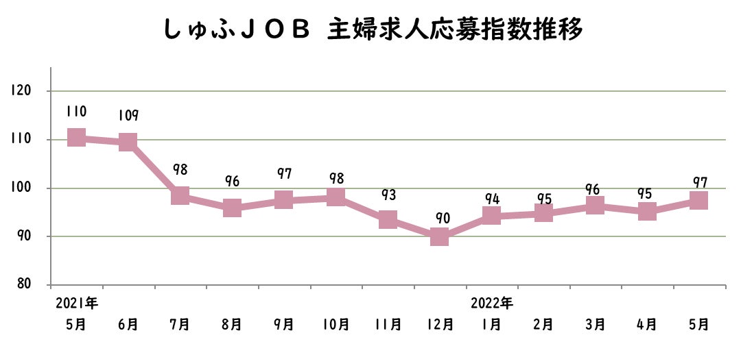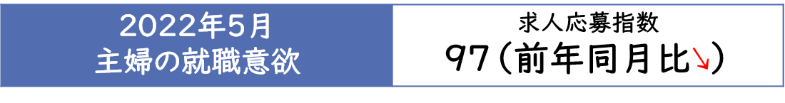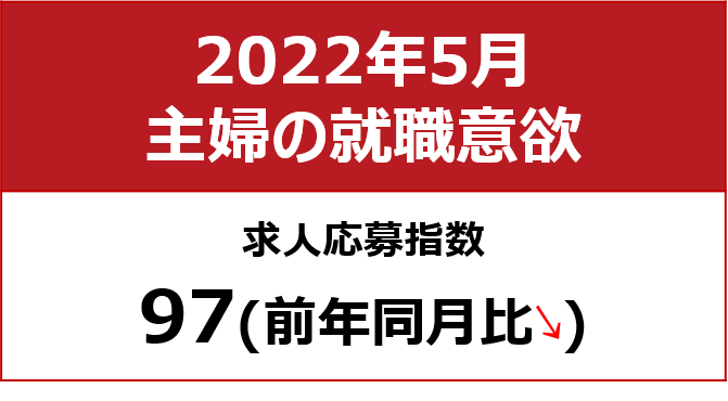 【主婦の就職意欲調査 2022年5月】主婦求人の応募指数97(前年同月比-13)