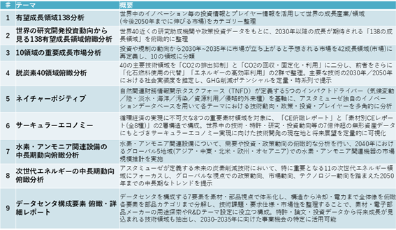 研究資金・規制動向・投資動向などを踏まえ、バックキャスティング思考により“非連続に”成長する市場を可視化している点が特長です。