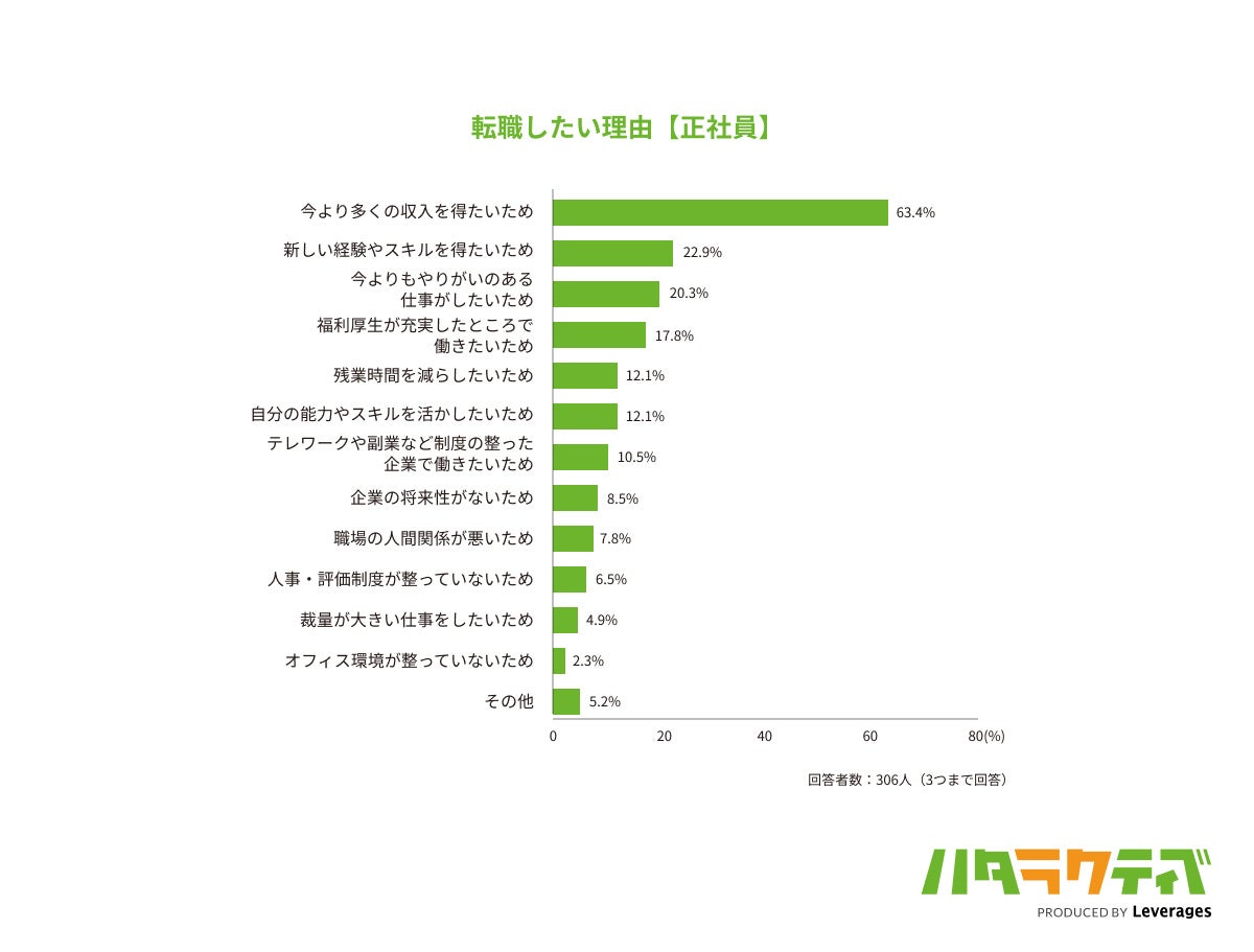 転職したい理由「今よりも多くの収入を得るため」が圧倒的1位