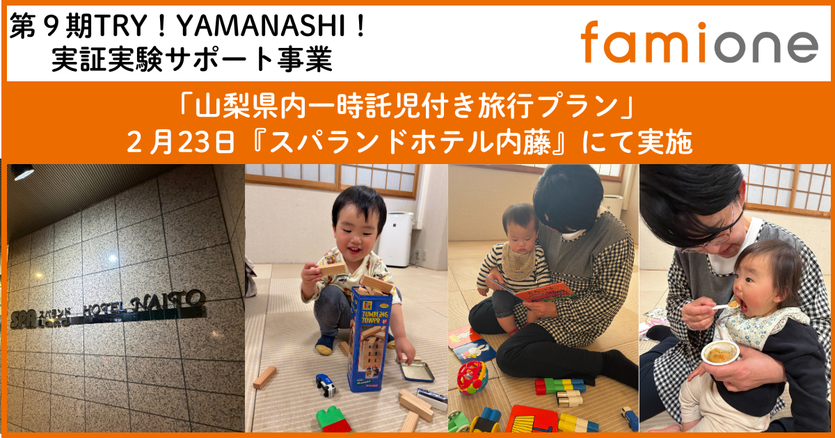 山梨県内「一時託児付き旅行プラン」の実証事業を、『スパランドホテル内藤』にて実施いたしました