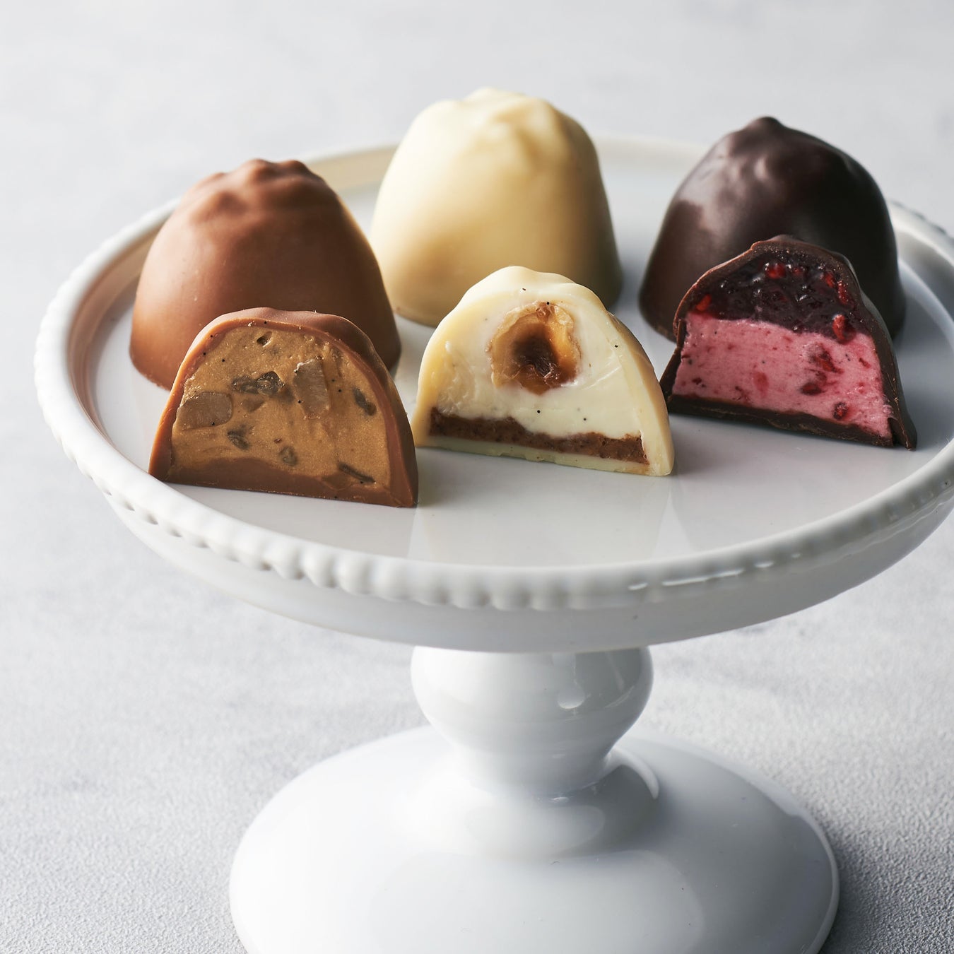 生クリームにフォンダンとバターを合わせた”フレッシュクリーム”を包み込んだベルギー伝統のショコラ「マノン」。 古くからベルギーで親しまれているショコラの 1 つですが、フレッシュクリームは繊細で管理が難しいため、現在ではベルギーでも販売するお店が少ない隠れた名品として知られ、 ヴィタメール本店のマノンはベルギーの人々から高い支持を得ています。 その味を日本のお客様にもお召し上がりいただくため、週末限定で「マノン」を販売いたします。 軽やかな口どけのフレッシュクリームは口に入れた瞬間、なめらかに溶けて豊かな味わいが広がります。 中に包み込んだ、ナッツやフランボワーズの果肉が食感のアクセントになっています。ベルギーで愛される繊細な味わいをお楽しみください。
