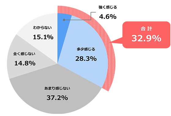 一方で、「あまり感じない(37.2%)」「全く感じない(14.8%)」は合計52.0%と、過半数は大きな懸念を示していませんでした。