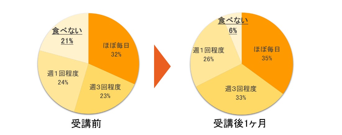 2021 年 10 月に NEC グループの従業員の皆さまに、腸内フローラの重要性やビフィズス菌を増やすためのレシピ紹介、運動についてセミナーを行い、セミナーの受講前と受講直後、セミナー受講 1 カ月後に 3 回に亘ってアンケートを取っていただきました。以下の通り、結果をご紹介します。