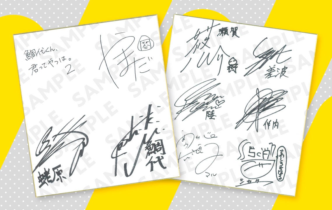 ヤマダ先生、松岡禎丞さん、増田俊樹さん、白井悠介さん、古川 慎さん、小林ゆうさん、杉田智和さん、西山宏太朗さん、沢城千春さんによる【直筆サイン色紙】2枚組セットを抽選で3名様にプレゼント!!