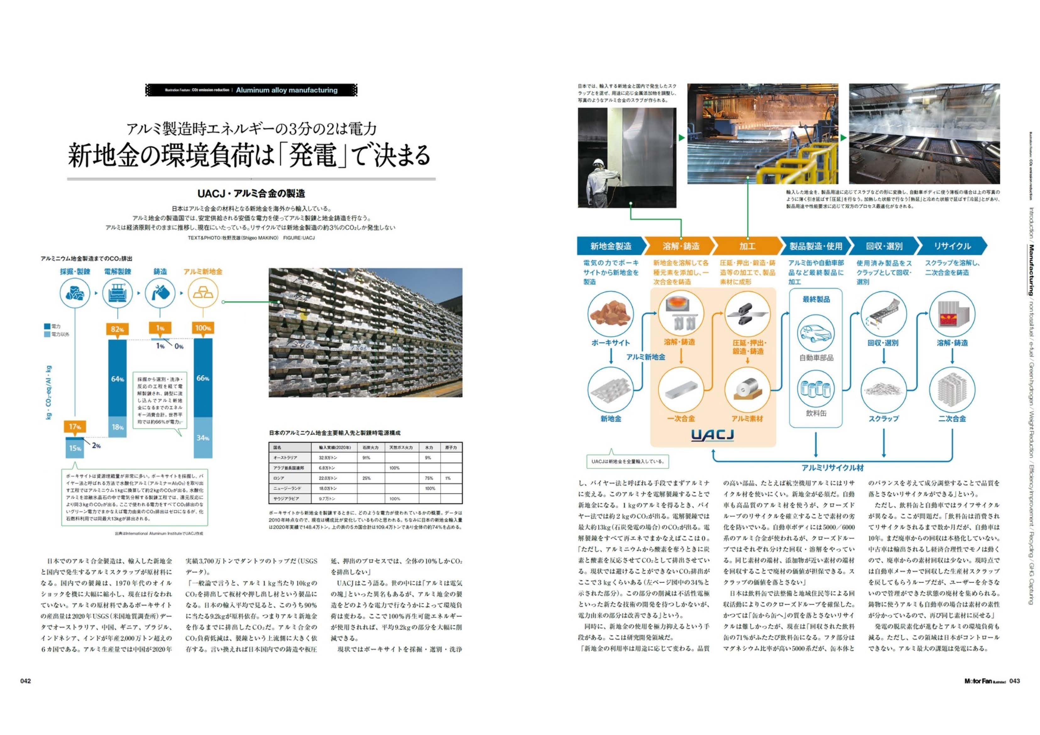 カーボンニュートラル実現に向け、自動車メーカーやサプライヤーは高い目標を掲げ開発を続けています。内燃エンジン車の排ガスに含まれるCO2量の削減=燃費向上や、電動車への移行などはもちろん有効な手段であり、これまでパワートレーンの効率化について弊誌は頻繁に特集を掲載してきましたが、自動車を構成する部材の製造時におけるCO2排出量の削減にも同様に注目すべきでしょう。