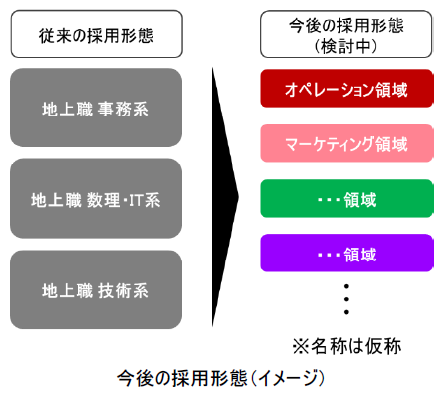 (*1)業務企画職では、これまで「地上職 事務系」「地上職 数理・IT系」「地上職 技術系」の3系統に分けて採用活動を実施。