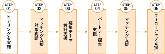 スタートアップが、自社事業のスケールに向けて最適なオープンイノベーションの目的設定を行い、マッチング支援を実施いたします。