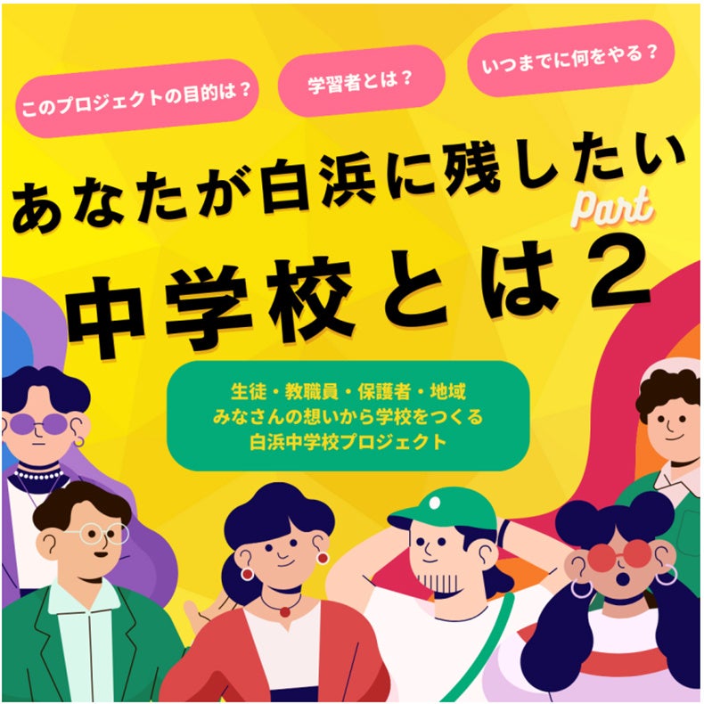 生徒・教職員・保護者・地域 の想いから学校をつくる白浜中学校プロジェクト!次年度カリキュラムを考えるワークショップ「あなたが白浜に残したい中学校とは」に参加します 2024年2月14日(水)