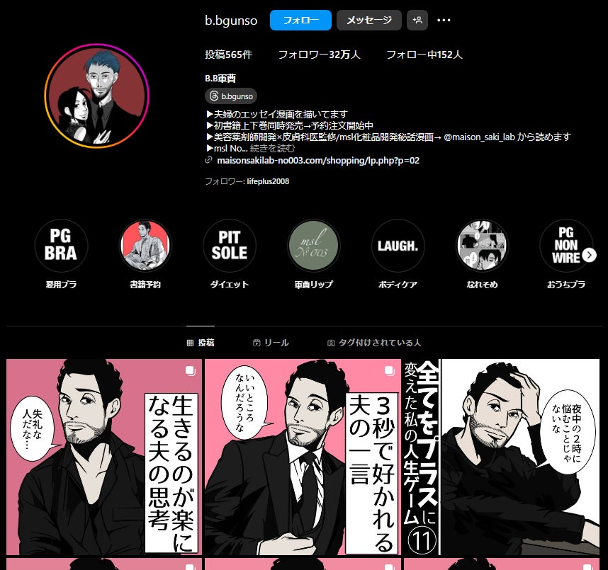 Instagram上(@b.bgunso)で投稿される、妻・軍曹と夫・髭との日常を綴ったエッセイ漫画。ストレス社会をスーパーポジティブに変える、言葉のエッセンスが満載!