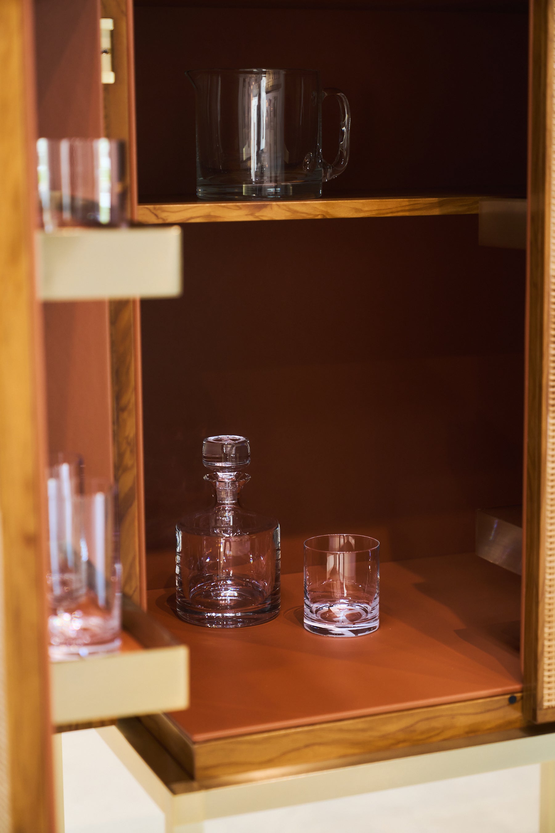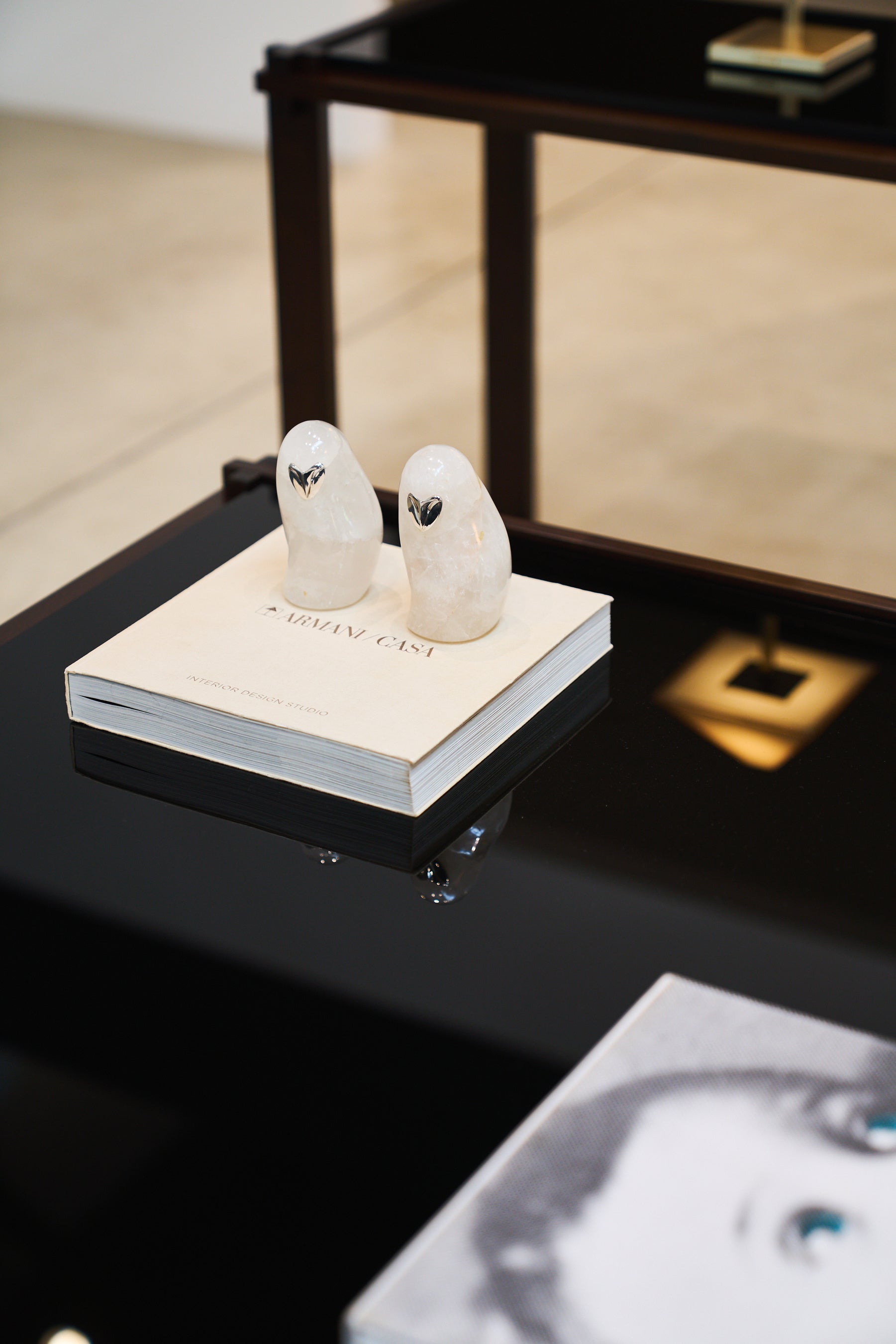 4つのエリアに配された家具のインスタレーションには、アルマーニ / カーザが提案する“もてなしの美学”が息づいています。職人の手によって一点一点丁寧に仕上げられた小物がさりげなく添えられ、空間にやわらかな表情をもたらします。
