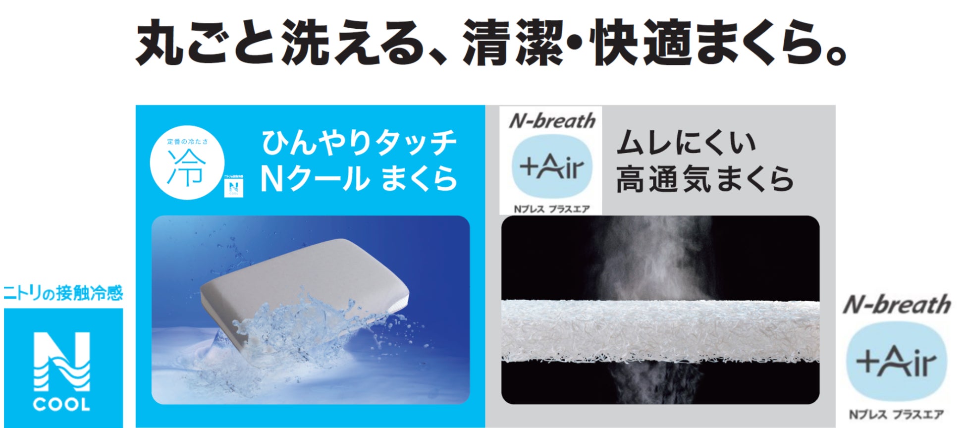 夏にピッタリ!「まるごと洗える清潔・快適まくら」Nクール・N breath +Air のご紹介!