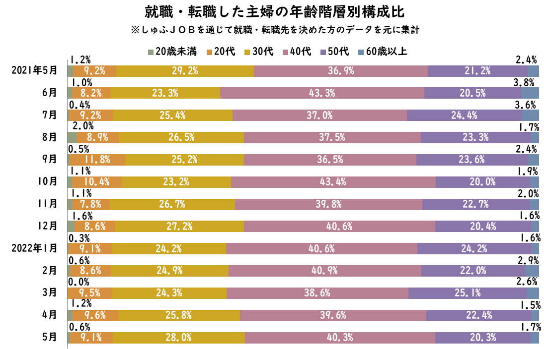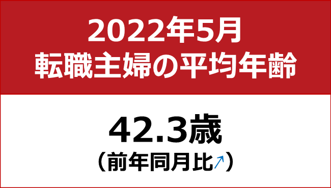 【転職主婦の平均年齢調査 2022年5月】42.3歳(前年同月比+0.2歳)