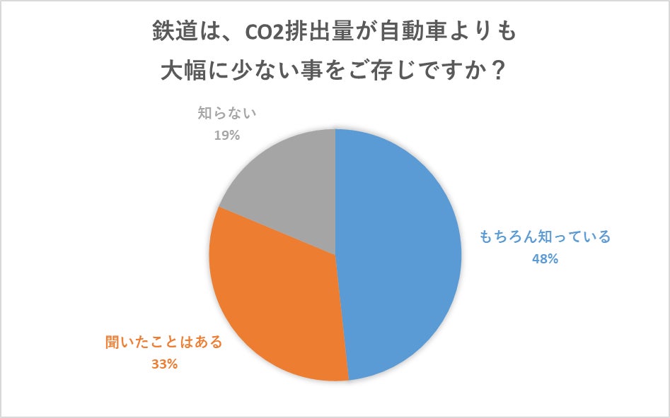 コロナ禍で密を避けるためにも、マイカーでの旅行が増加しましたが、CO2排出量に関していえば鉄道は自動車の約1/7と大幅に少なく、遠ければ遠いほど鉄道がより環境に優しい乗り物という事が分かっています。アンケート結果でも約8割の人が認知している結果になりました。
