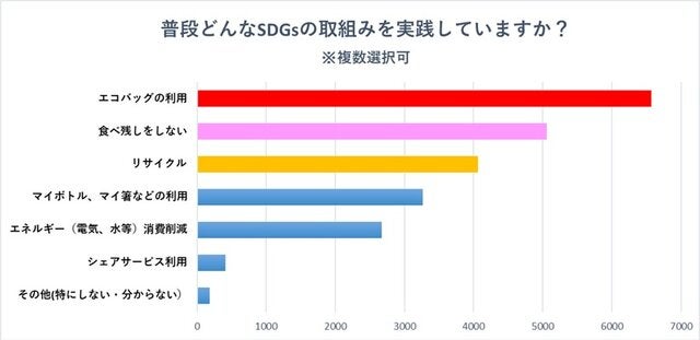 日常でのSDGs達成に向けた取組みでは、一番多かった回答は「エコバックの利用」でした。