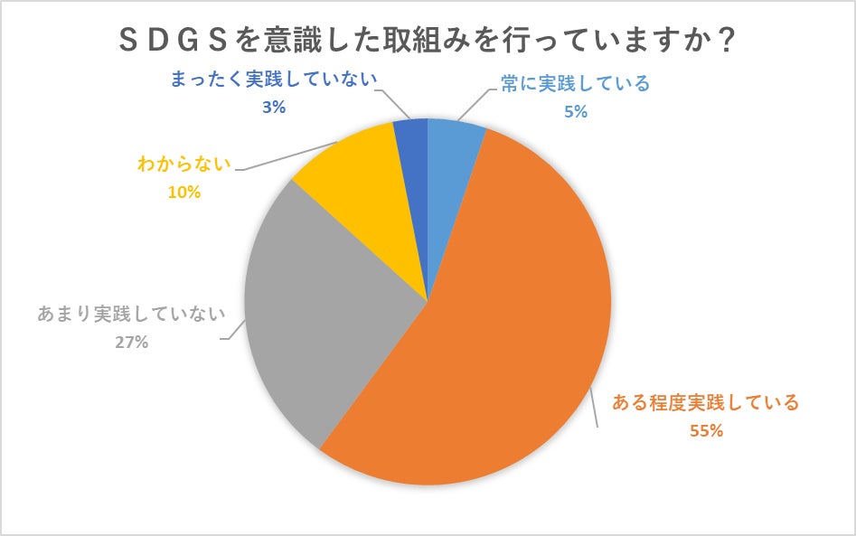 生活の中でSDGsを意識した取組みを行っているかという質問に対しては、6割の人に日常での実践を確認できました。