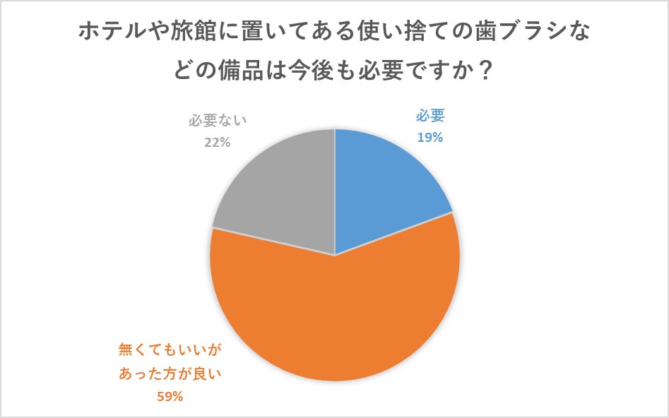 ▼ Q 脱プラスチックの取組が増える中、ホテルや旅館に置いてある使い捨ての歯ブラシなどの備品は今後も必要ですか?