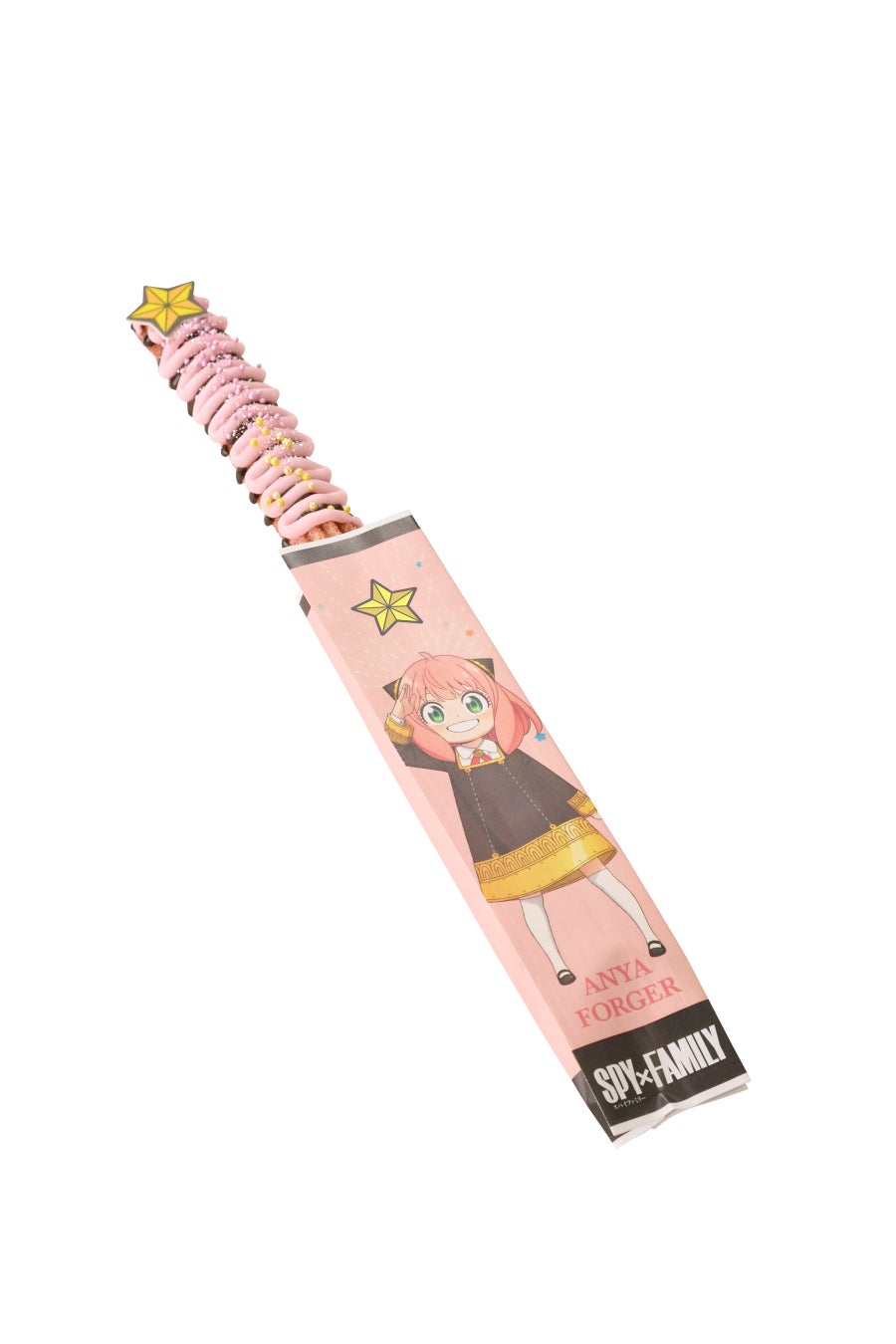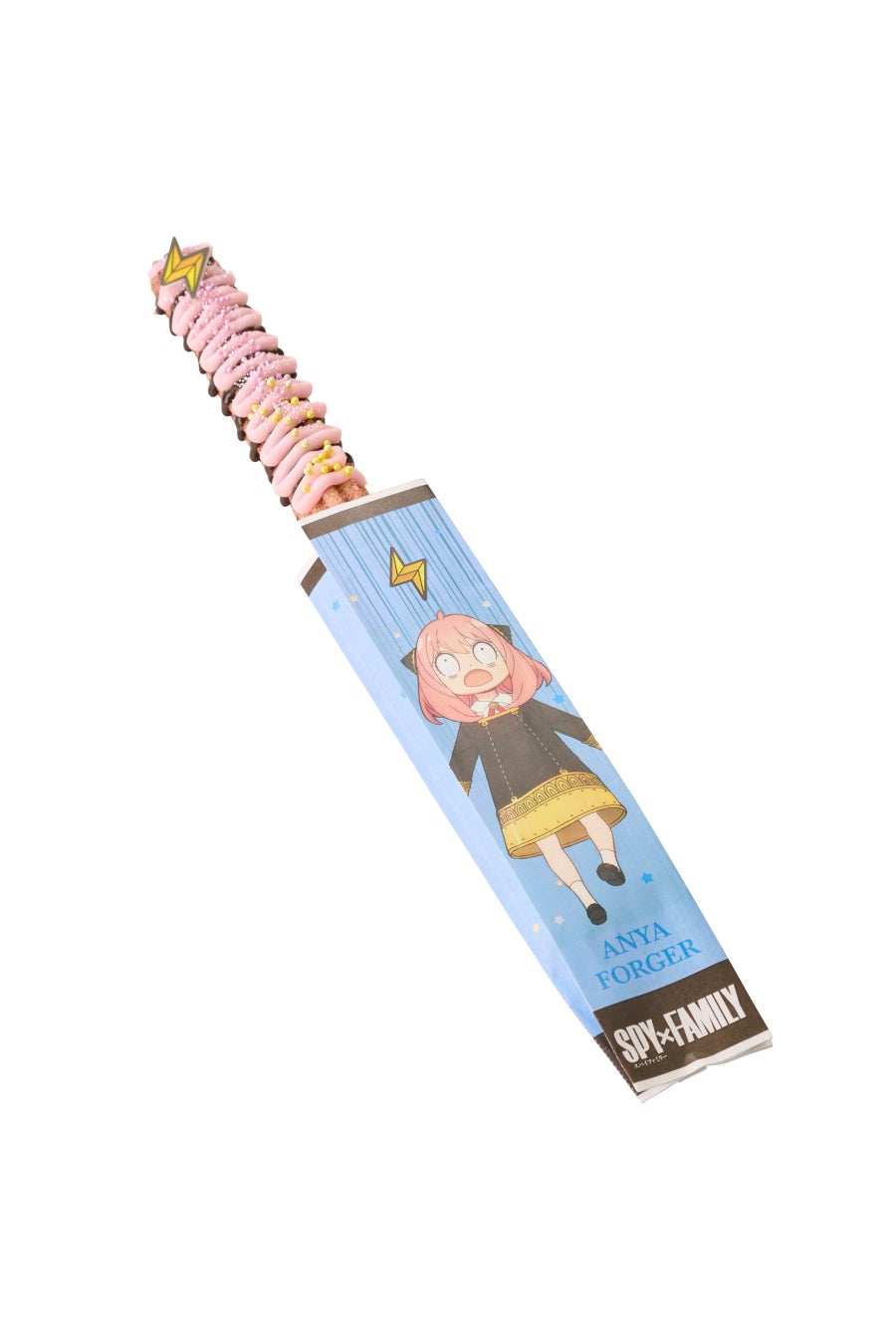 今回の新作チュリトスは、テンションに合わせて2種類からお好みのパターンを選ぶことが可能! 1つ目は、「ステラ」をもらった際の、アーニャの“えっへん!”な気分を表現。2つ目は「トニト」をもらい、アーニャの“がーん!”な気分を表現しました。どちらのパターンも、アーニャをイメージした ダブルベリーがアクセントのチュリトスです。食べ歩きフードの定番メニューを、その時のテンション そのままにお召し上がりください。