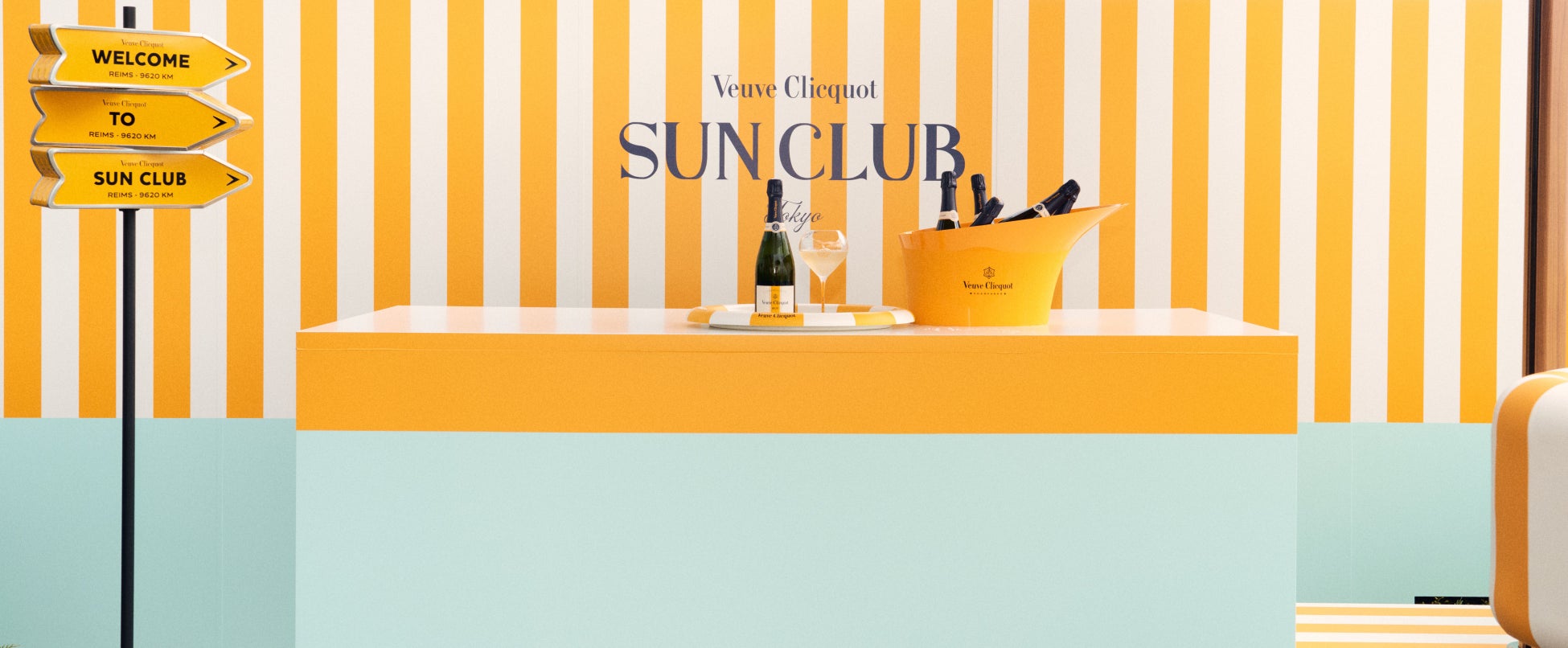都会の街並みを一望できるルーフトップ、夕日が美しいプールサイド、どこまでも青い海が広がるビーチに登場する、イエローストライプが織りなす南仏のリゾートを彷彿とさせる洗練された大人のための空間「SUN CLUB by Veuve Clicquot」をお楽しみください。
