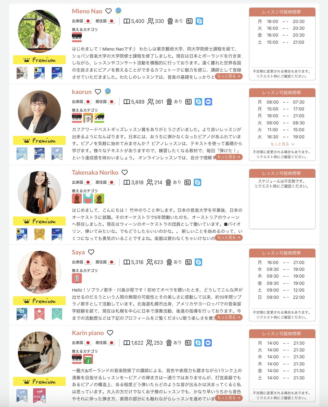 2024年7月現在でアクティブにオンライン音楽レッスンを提供している講師数は225名となります。