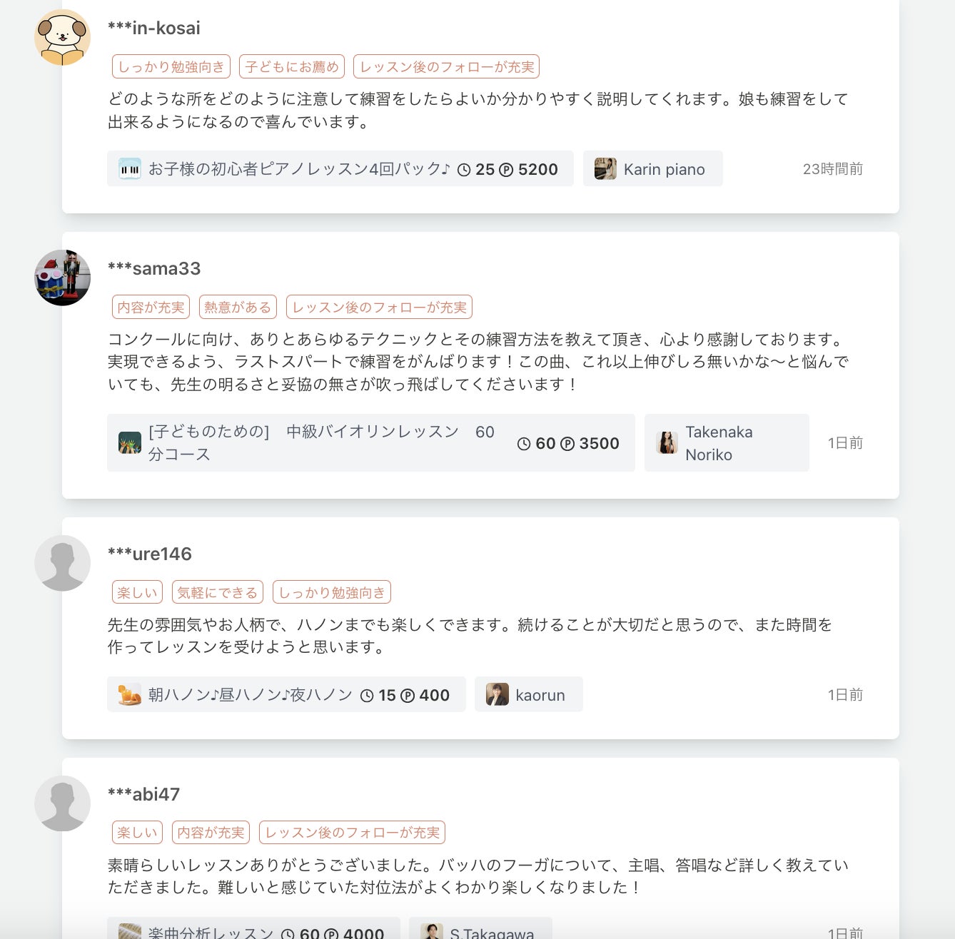 ▼オンライン音楽レッスン口コミ一覧