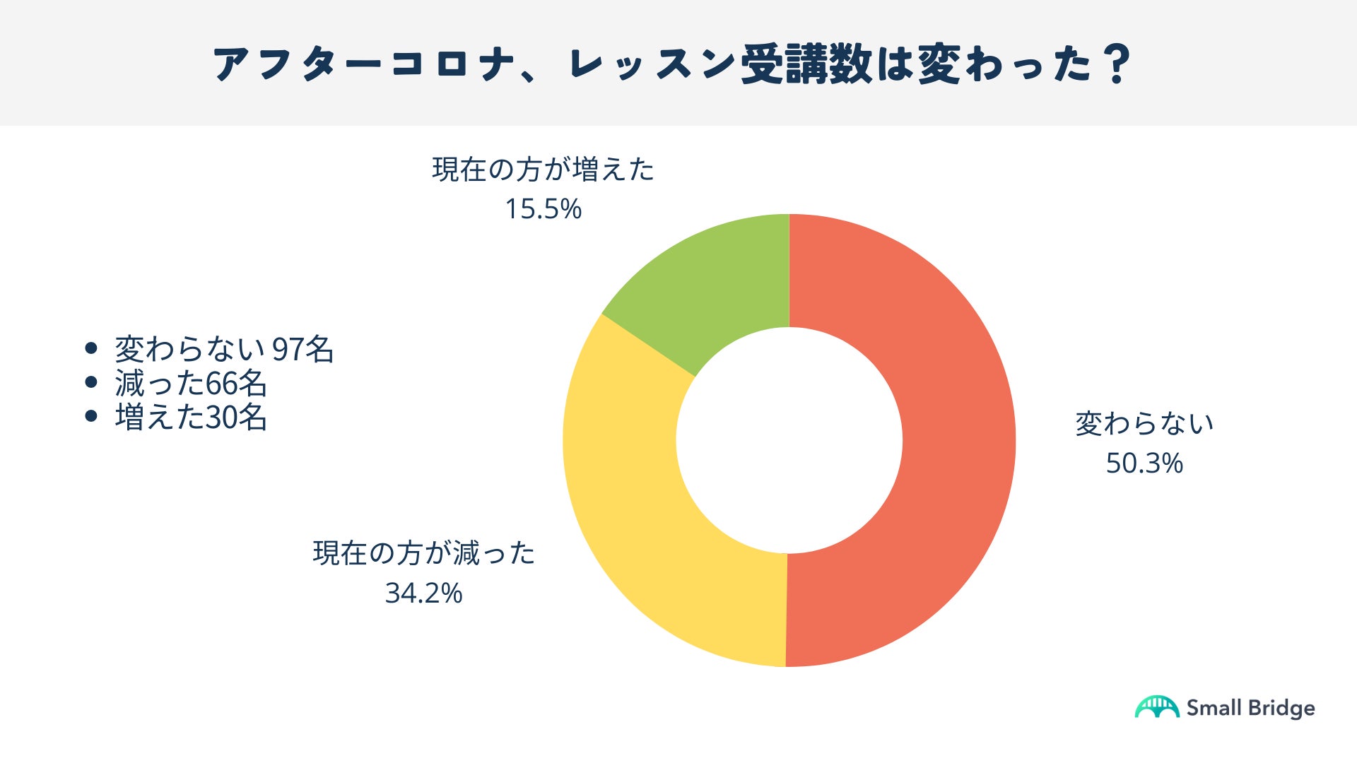 通える範囲で先生を探す制限は今やもうなく、地域を限らず本当に習いたい先生から習えるのがオンラインレッスンの魅力であることが浸透し、継続して受講する生徒様数の増加につながっていると考えます。