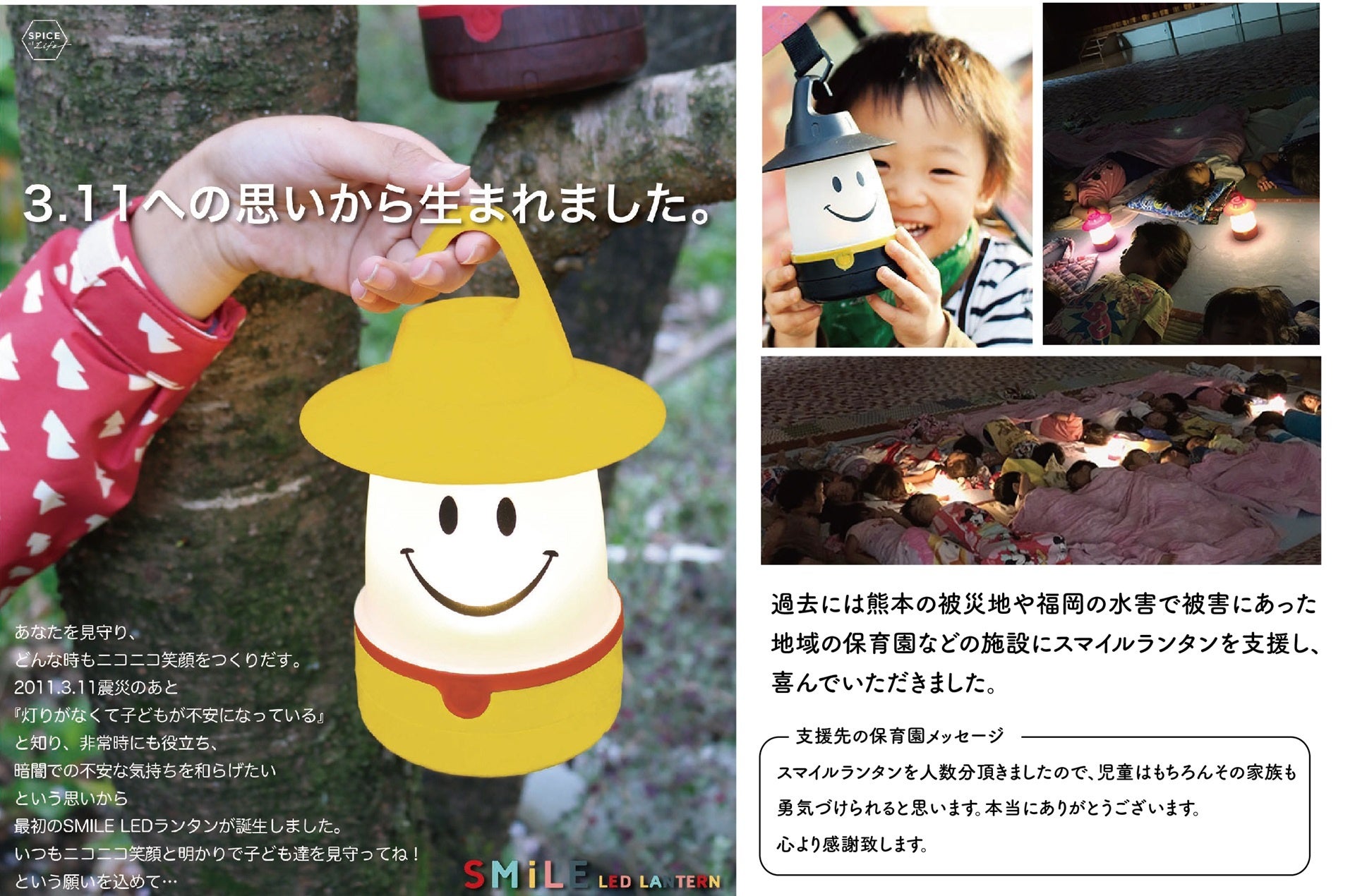 「非常時にも役に立ち、少しでも不安な気持ちを和らげたい」という思いから生まれたスマイルLEDランタン。暗闇の中でもニコニコの笑顔と共に、心安らぐ明かりをお届けします。このランタンは、帽子を上下に付け替えて置いても、吊るしても使える2WAY仕様です。そして、災害時に役立つ「あかりの備え」は、夜のお散歩やキャンプ、そして夜中の授乳やおむつ交換の際にも手元を照らし、安心を提供します。