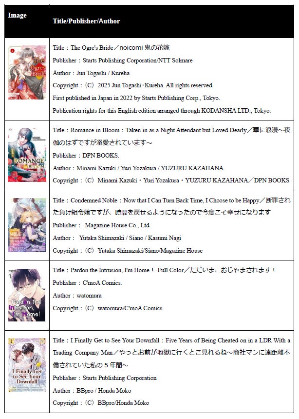 2025年の『MangaPlaza』での上位人気作品はこちらです。