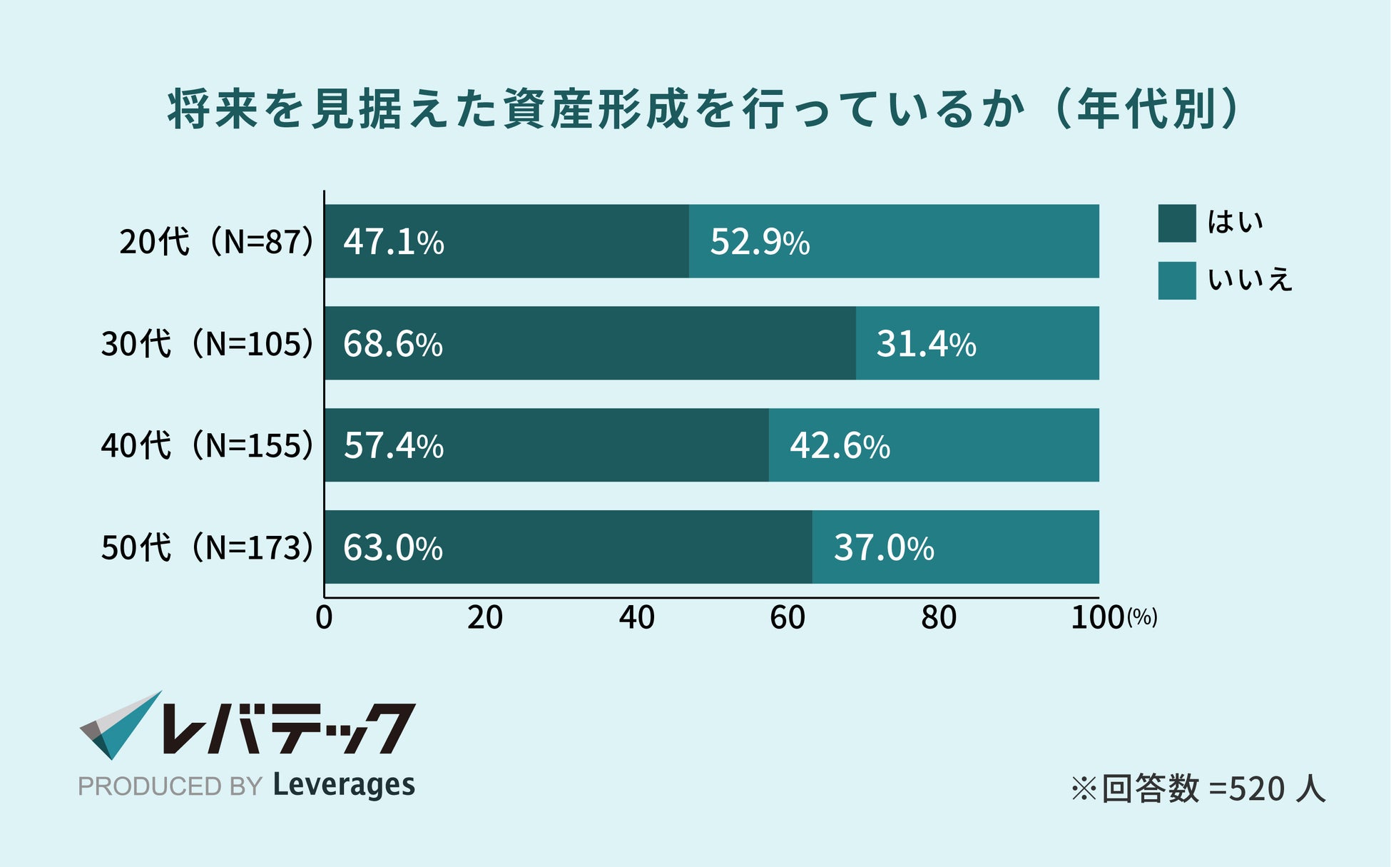 「日本を、IT先進国に。」をビジョンに掲げるレバテック株式会社( https://levtech.jp/ ) は、全国の20代〜50代の正社員IT人材520名を対象に、エンジニアの資産形成とライフイベントとの関係について調査を実施しました。
