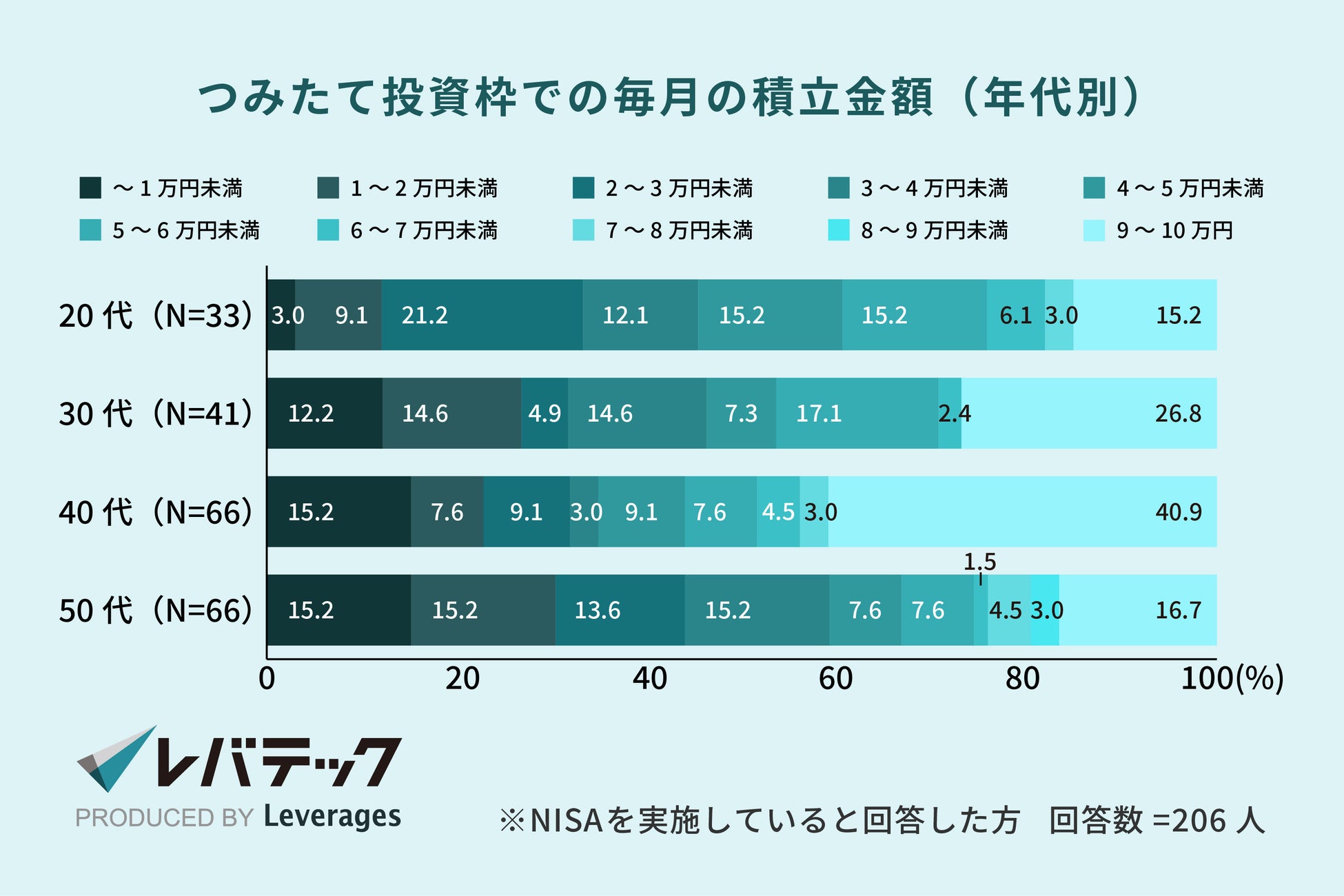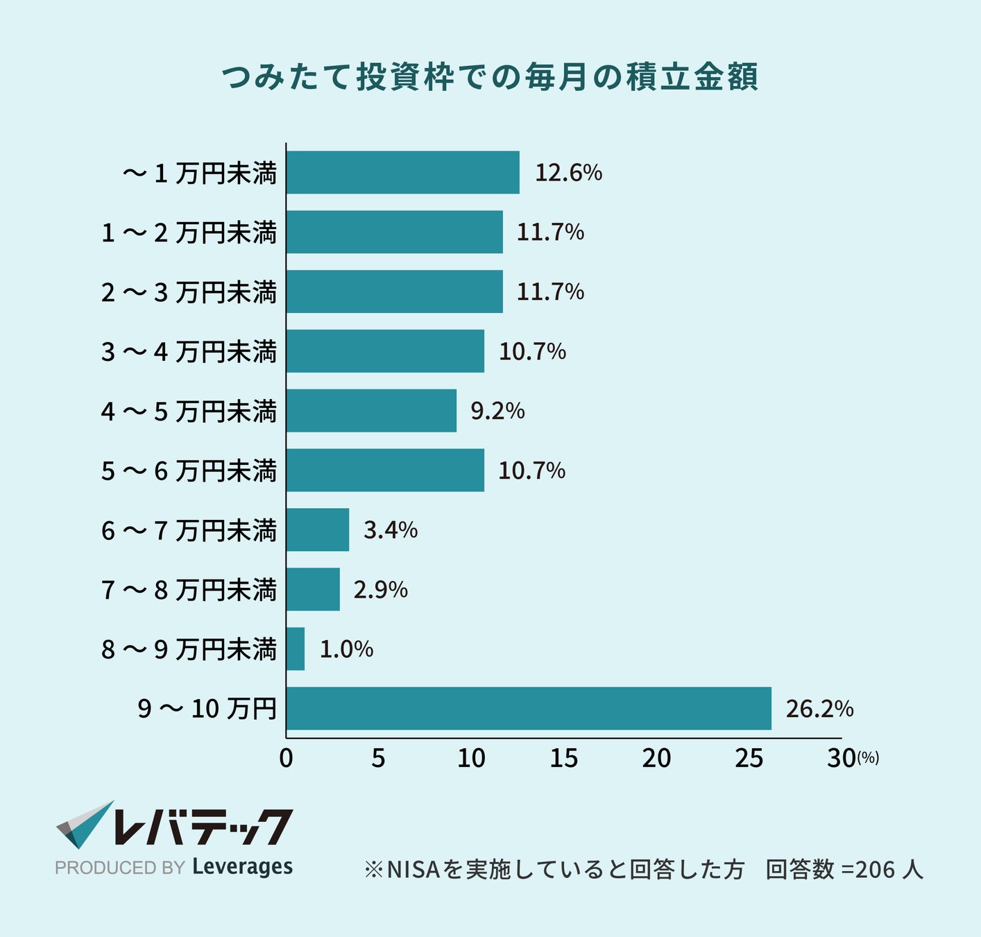 つみたて投資枠での積立額については、「月9~10万円」と回答した人が26.2%で最も多く、上限に近い金額の積立が多く見受けられます。